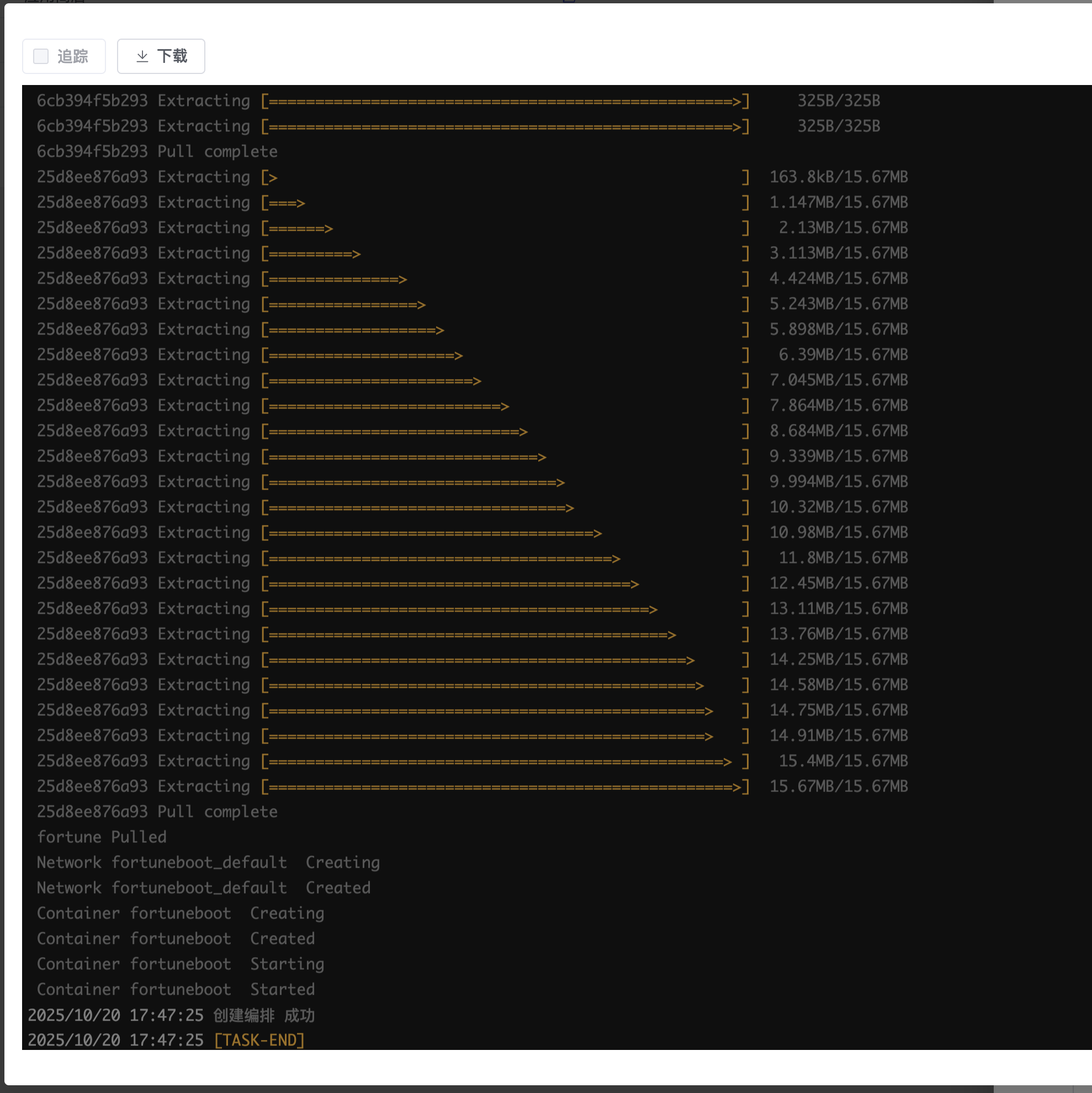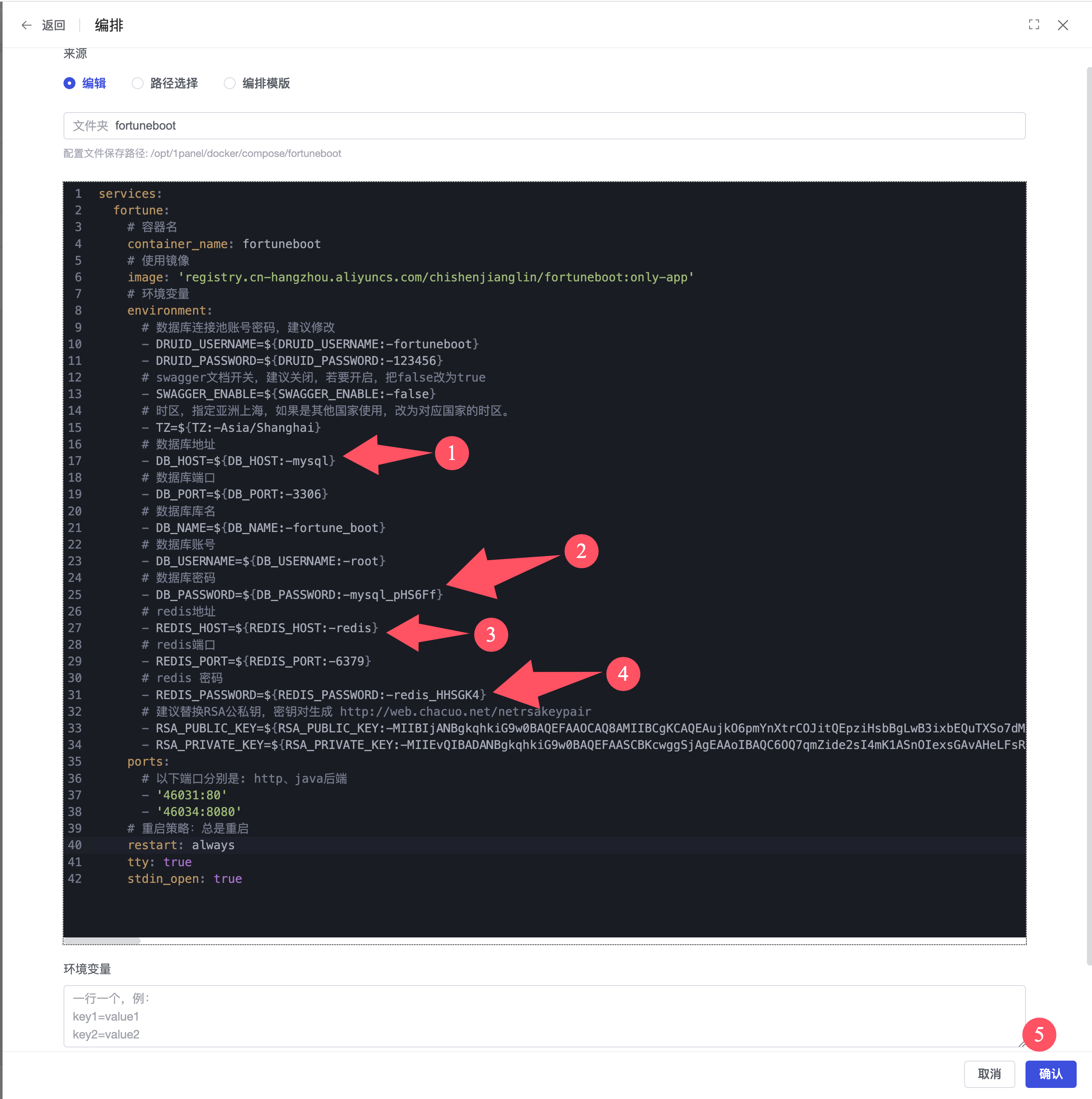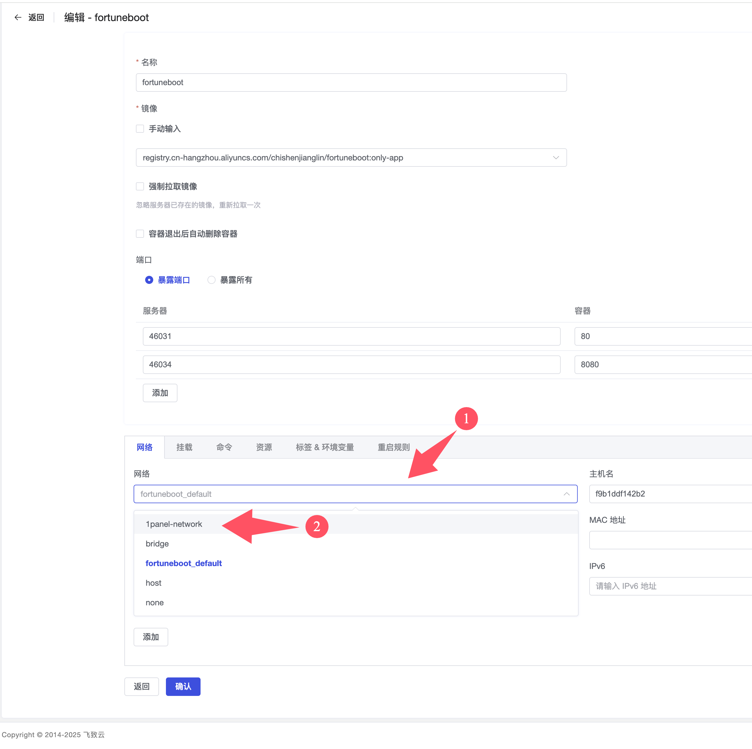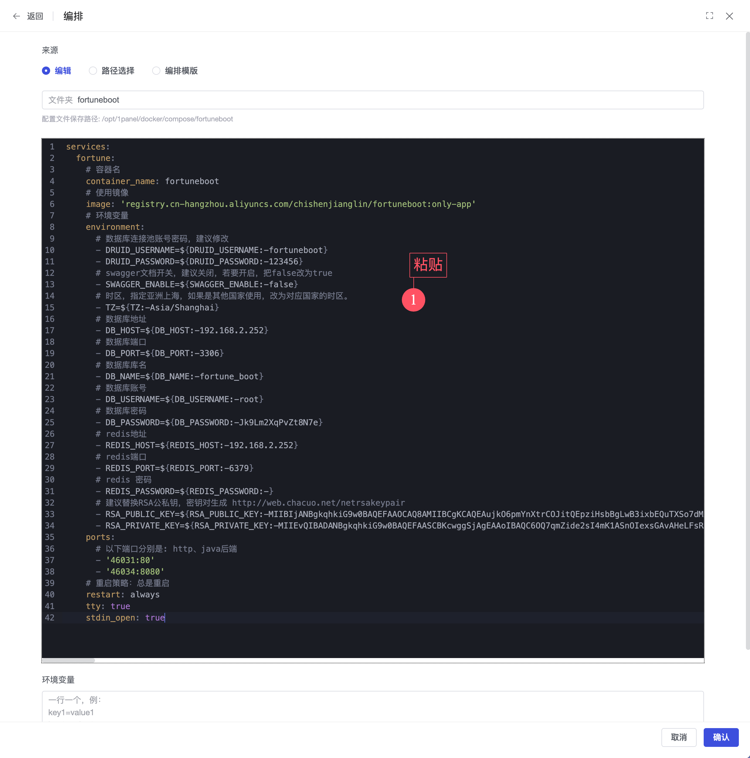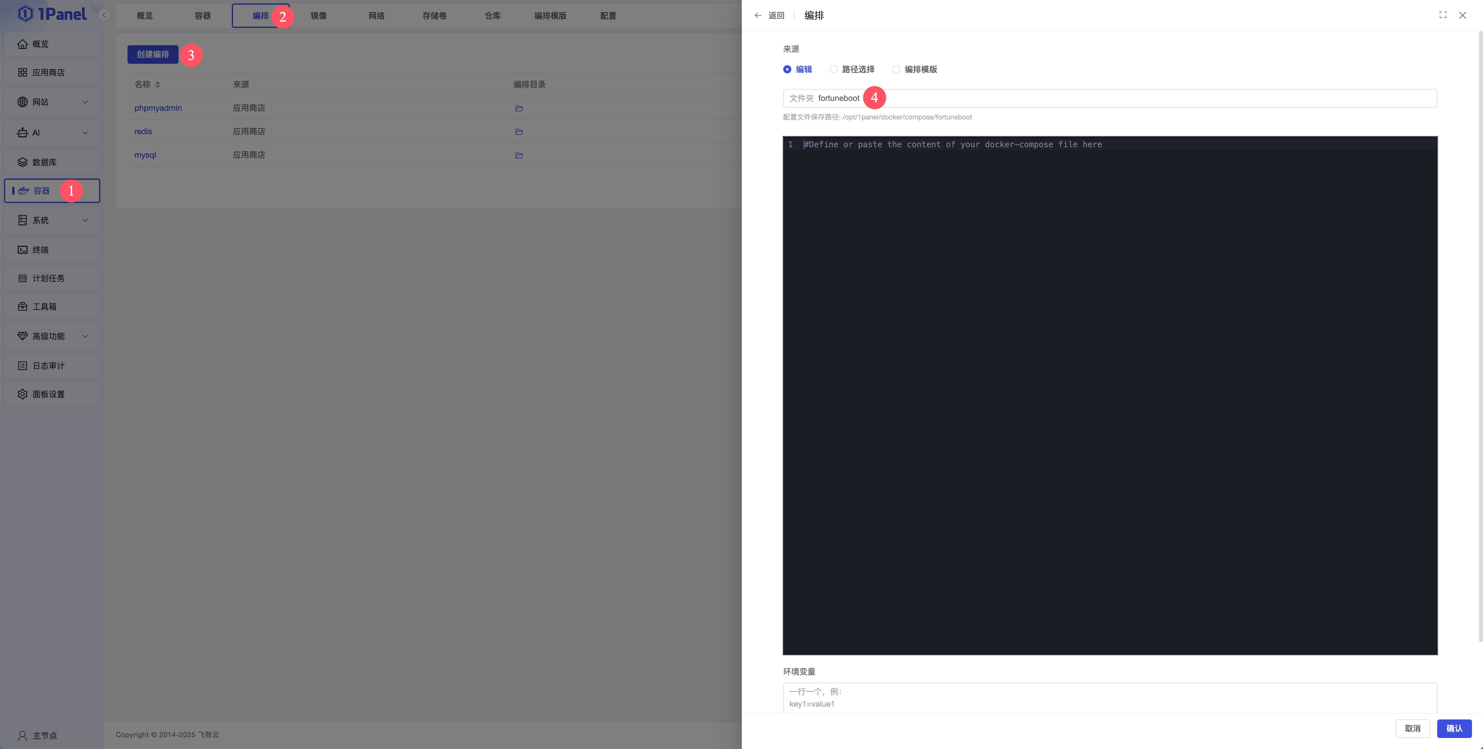 点击容器 -> 点击编排 -> 点击创建编排 -> 文件夹处输入"fortuneboot"