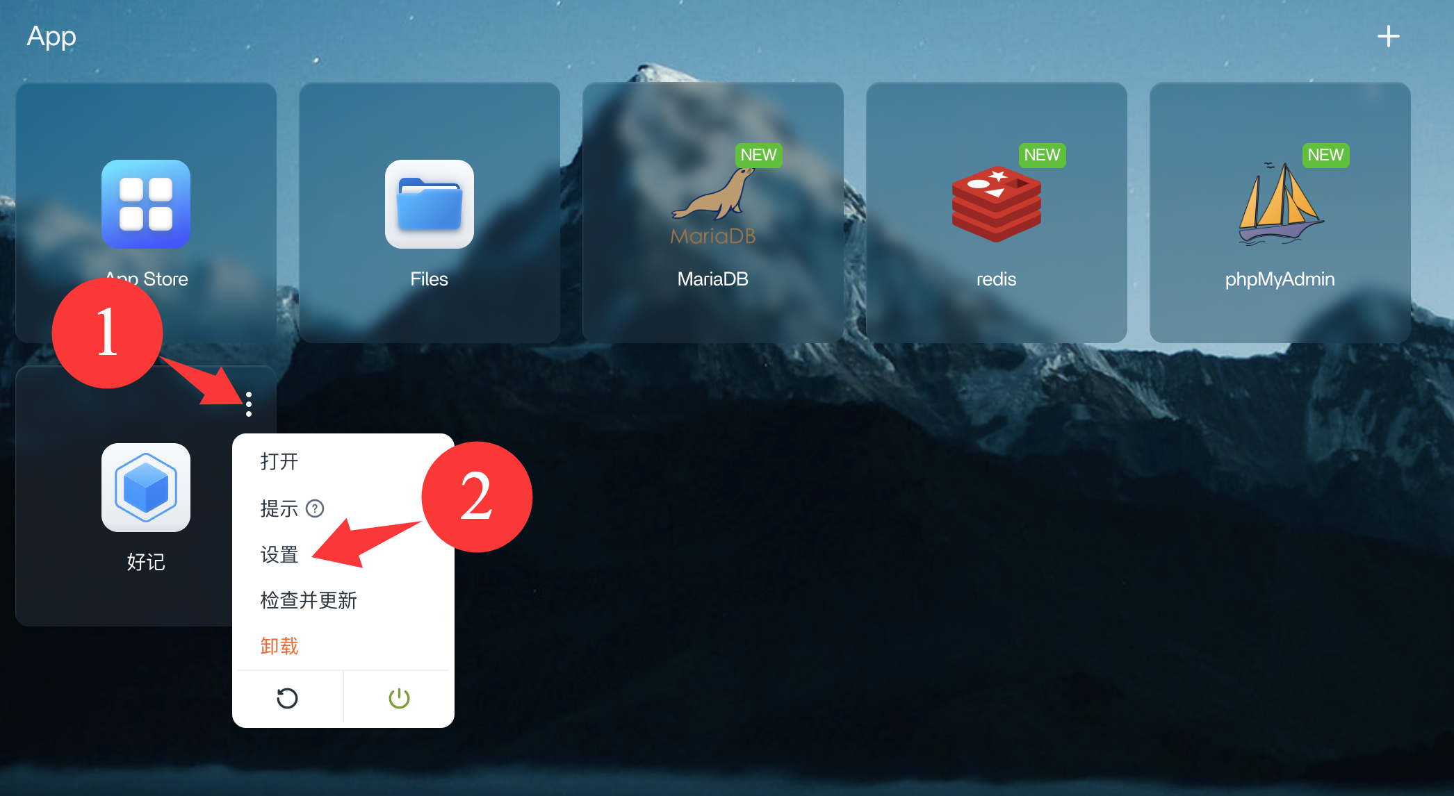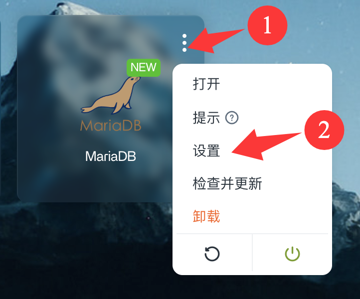 安装好MariaDB后,点击右上角的三个点,然后点击设置。