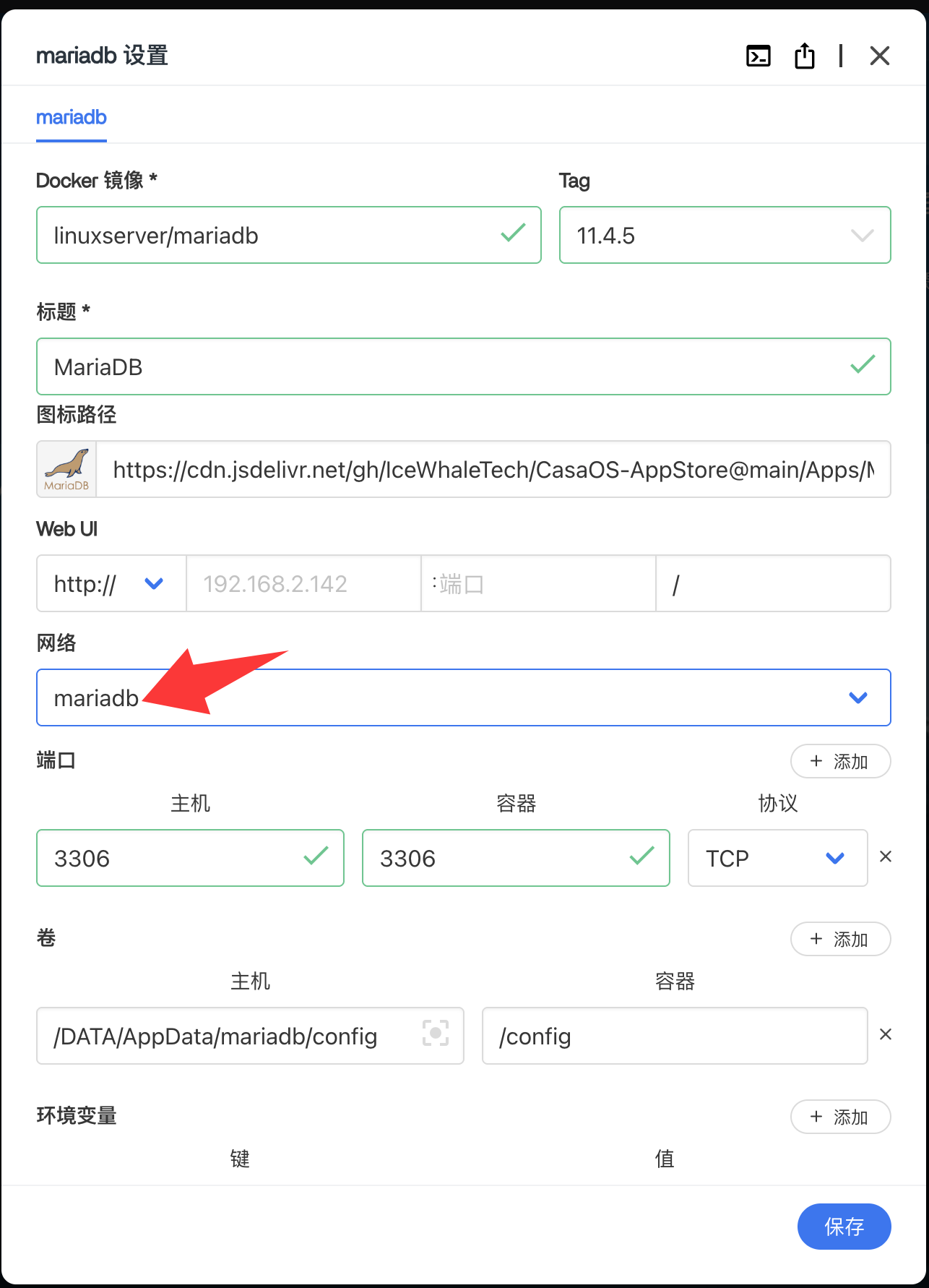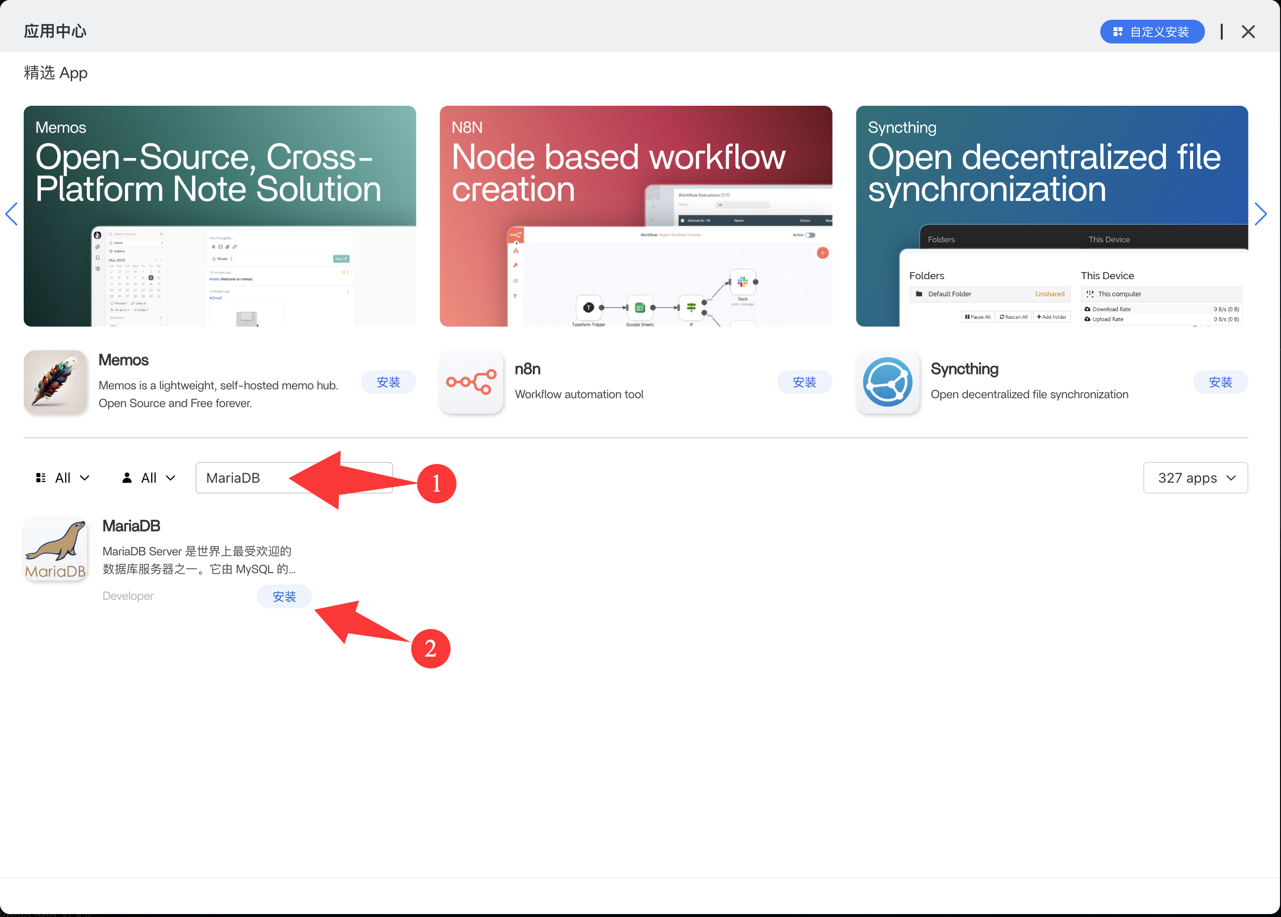 进入CasaOS后台 -> 登录 -> 点击 App Store -> 搜索MariaDB -> 点击安装。
