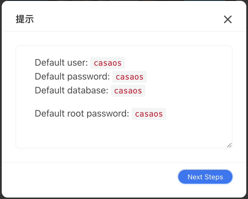 点击安装后,会显示如下内容,点击Next Steps即可: