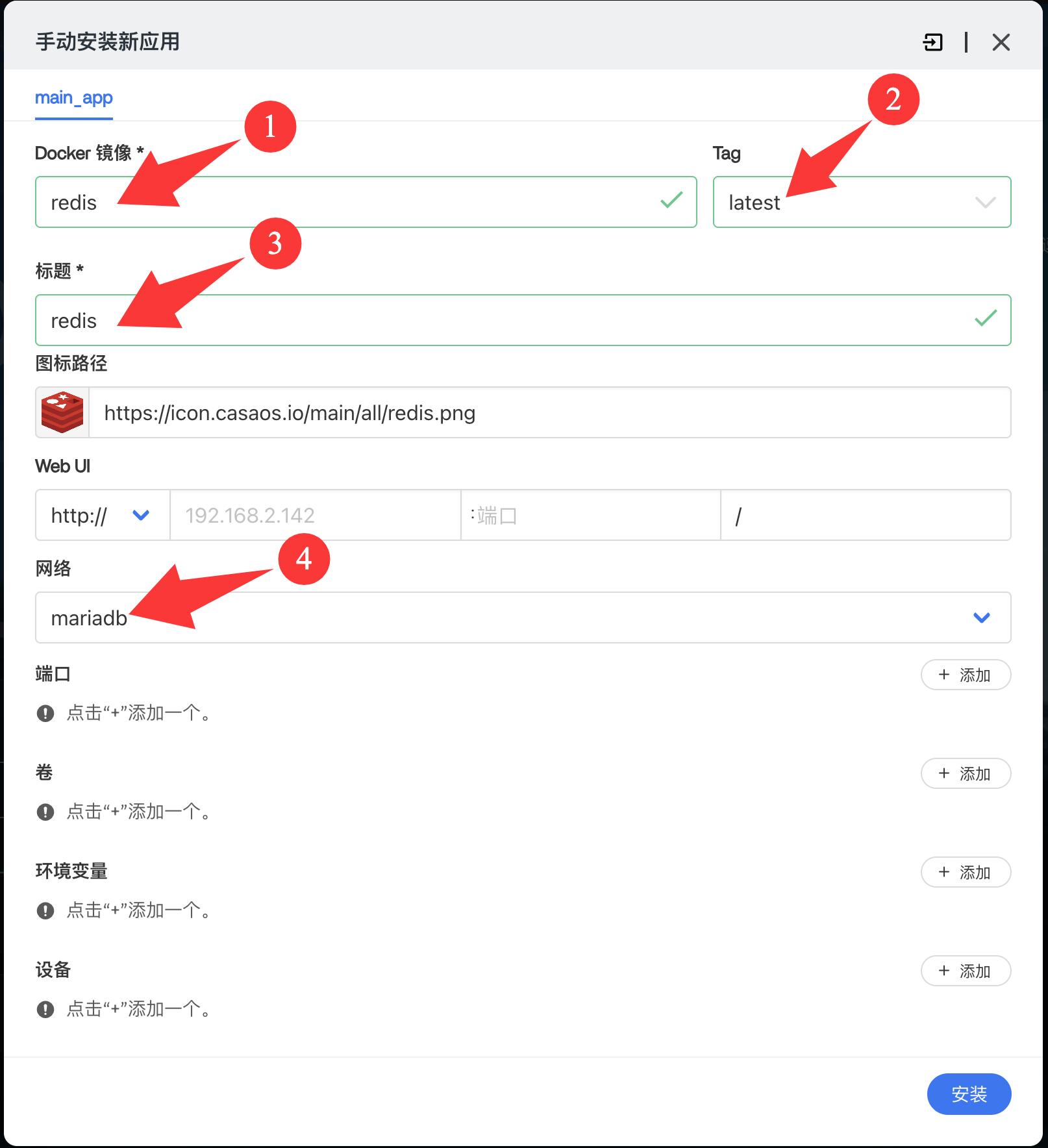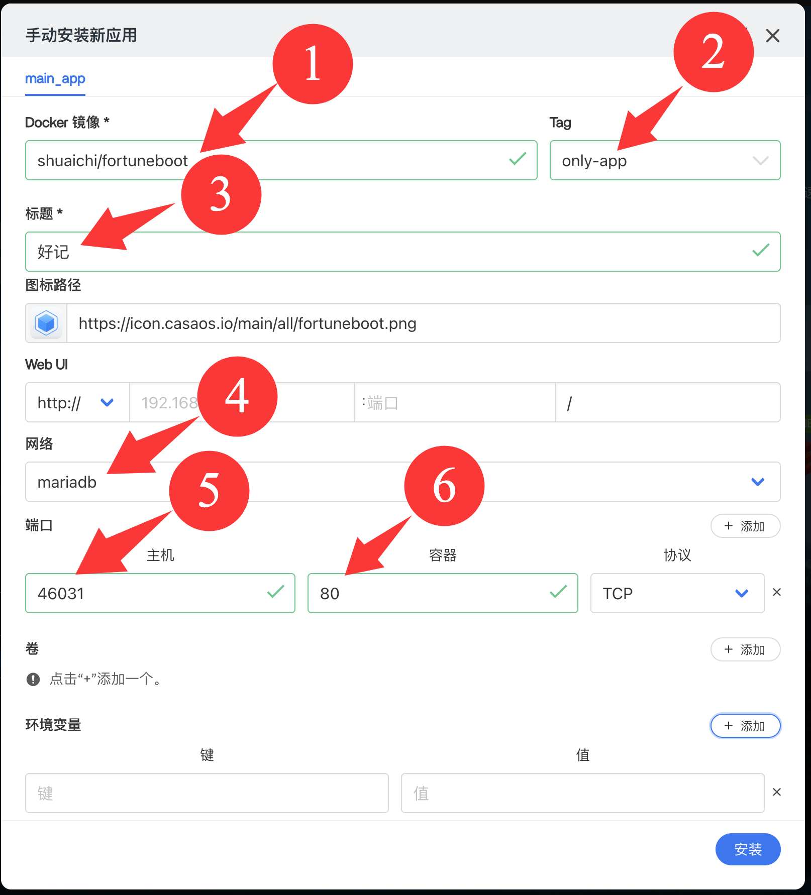 请自行安装CasaOS,并配置好docker官方仓库镜像拉取环境。