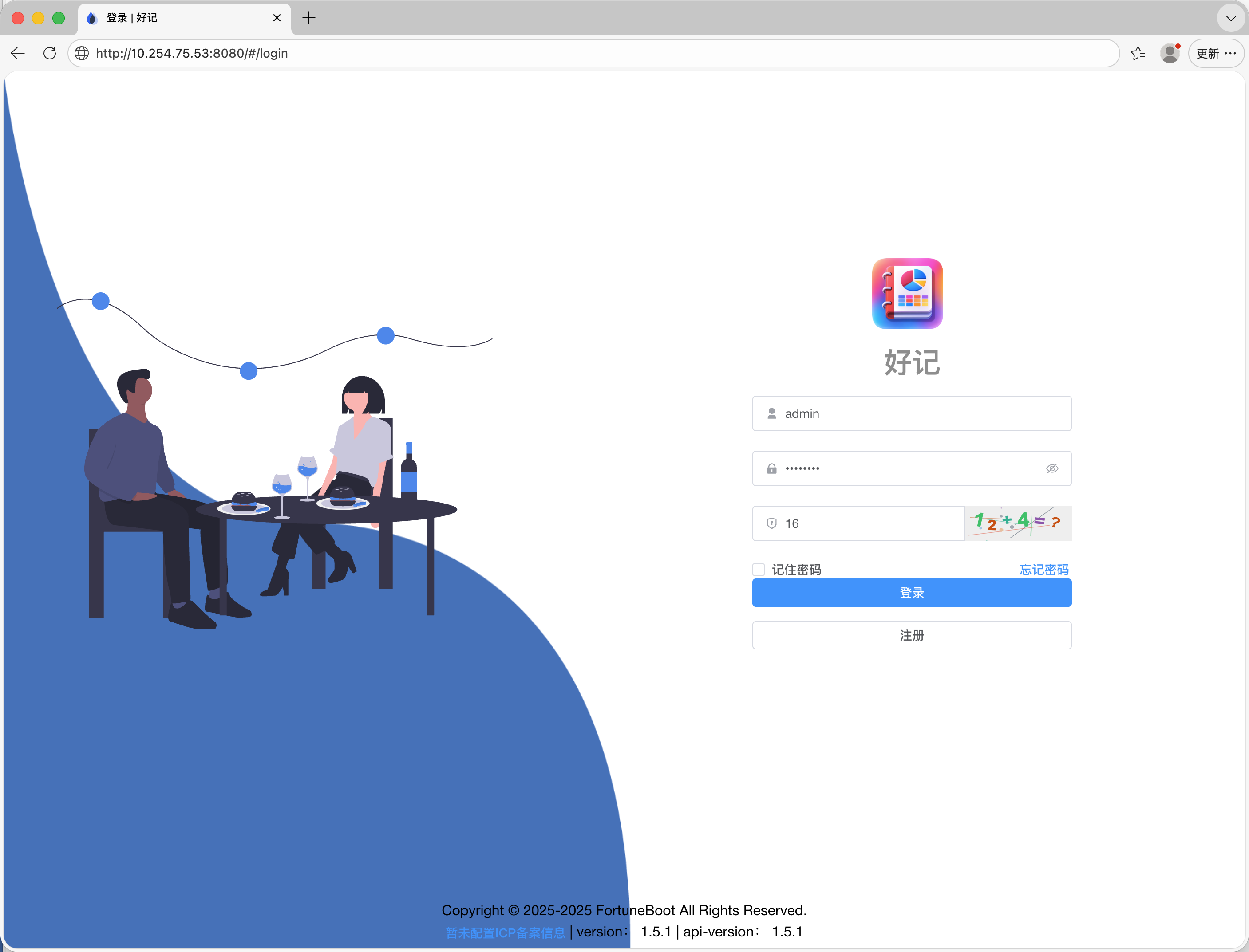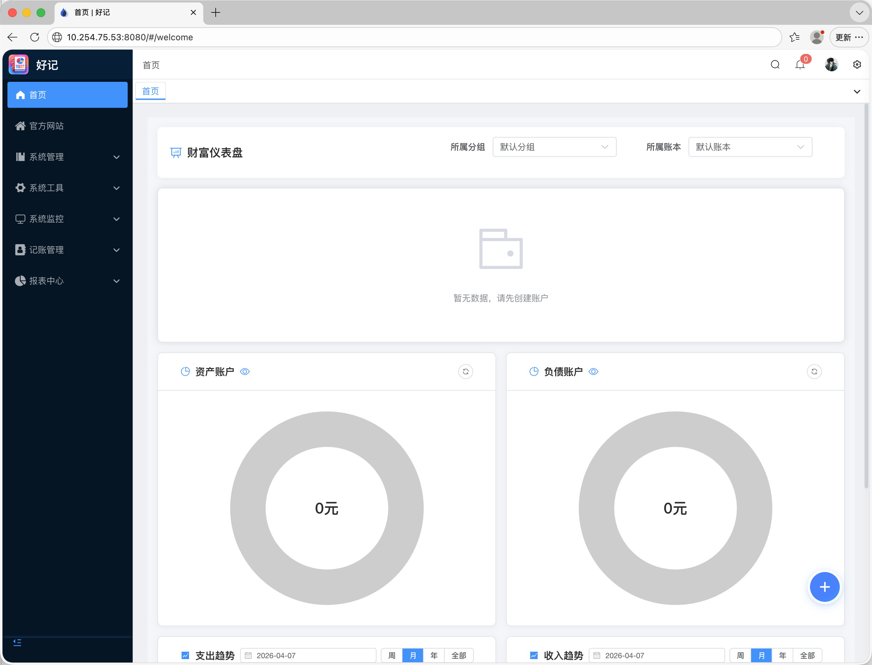 打开一个浏览器新标签 -> 输入 http://服务器ip:8080即可访问好记web端。
